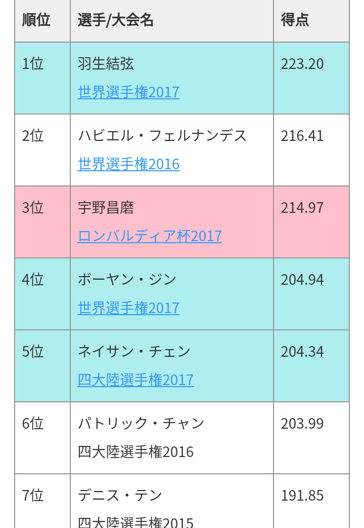 1位の羽生くんもさぞすごいんやろなぁ