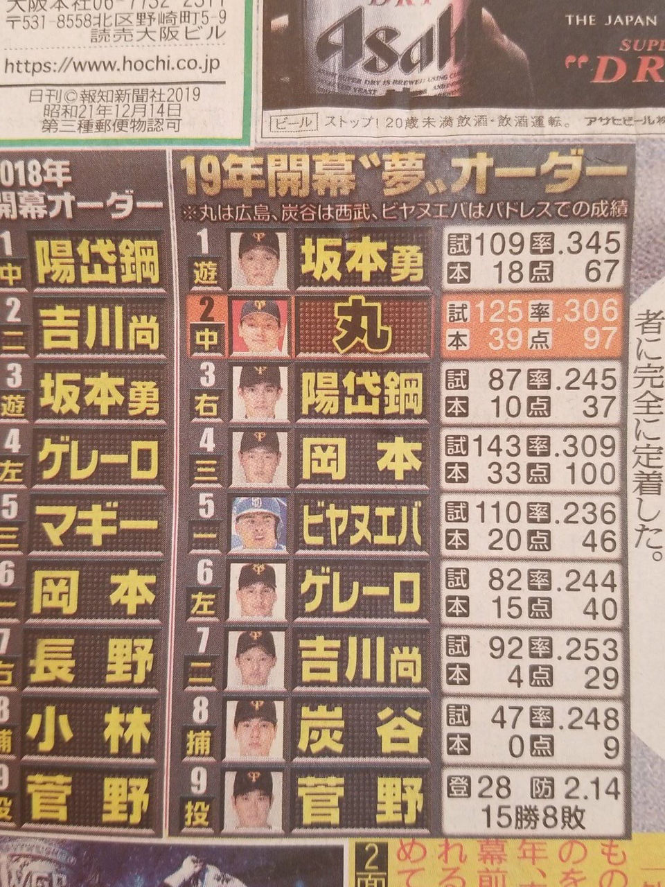 こんな成績で3番置くなら坂本3番でも変わらんやろ