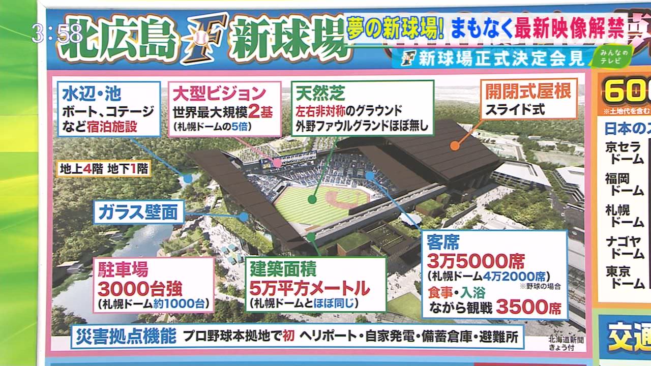ドーム内に大型の壁を設置できるように改修するもので、プロ野球北海道日本ハムが本拠地を移すことを前提に、利用料を割り引いて中規模のコンサートなどを誘致し、稼働率を上げたい意向。 本年度中に具体的な案をまとめ、ドーム開業20周年の2021年の実施を目指す。