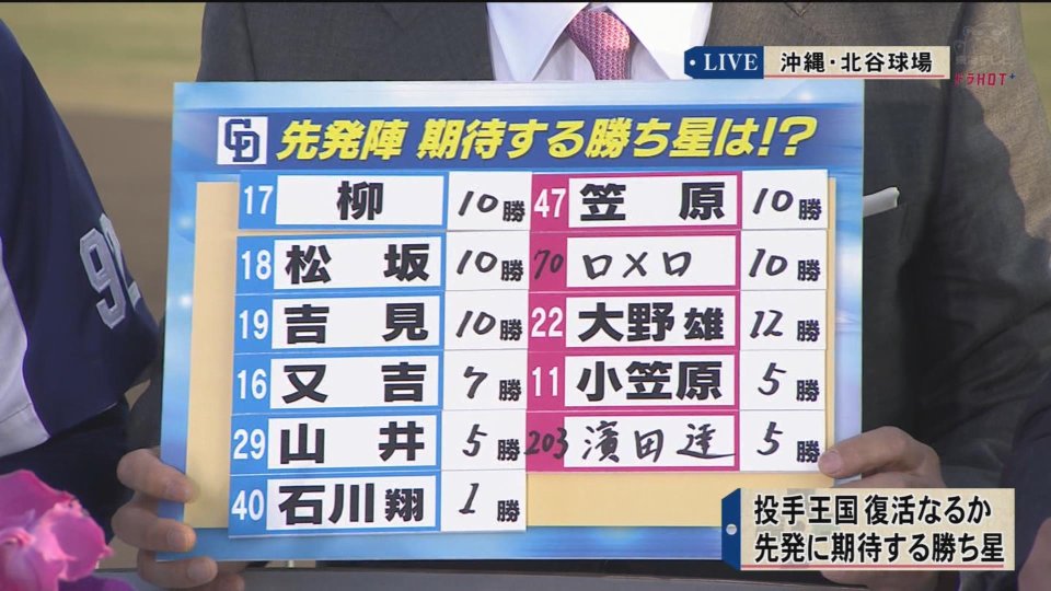 笠原開幕投手とかまじなん
