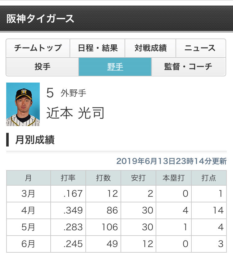 近本が打たんとチームに勢い出ないな