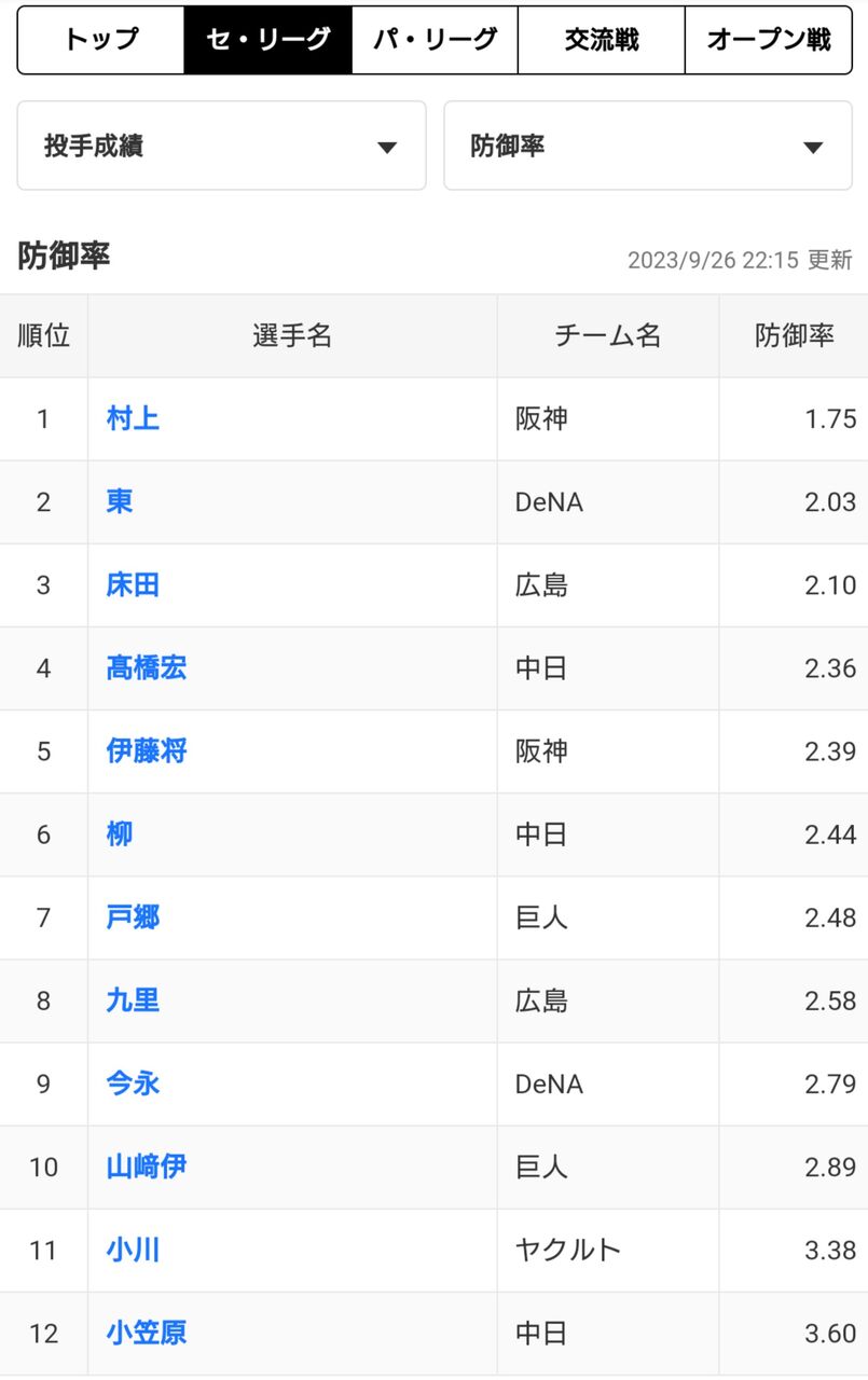 パの脳筋ストレート軍団に比べて技巧派が牛耳っとる感じやな