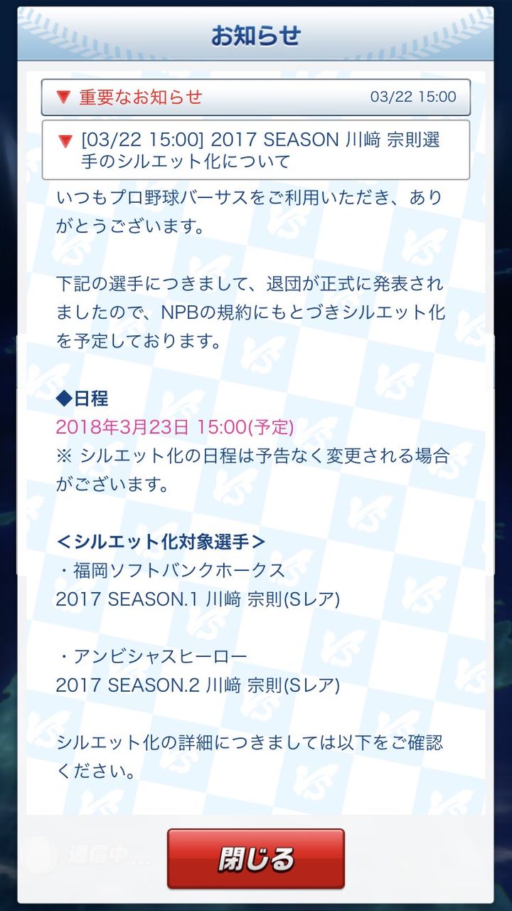 2月23日に公示された支配下登録選手に川崎は含まれていないことから、球団は当面、公式ホームページや告知物などへのプロフィル掲載を見合わせる。