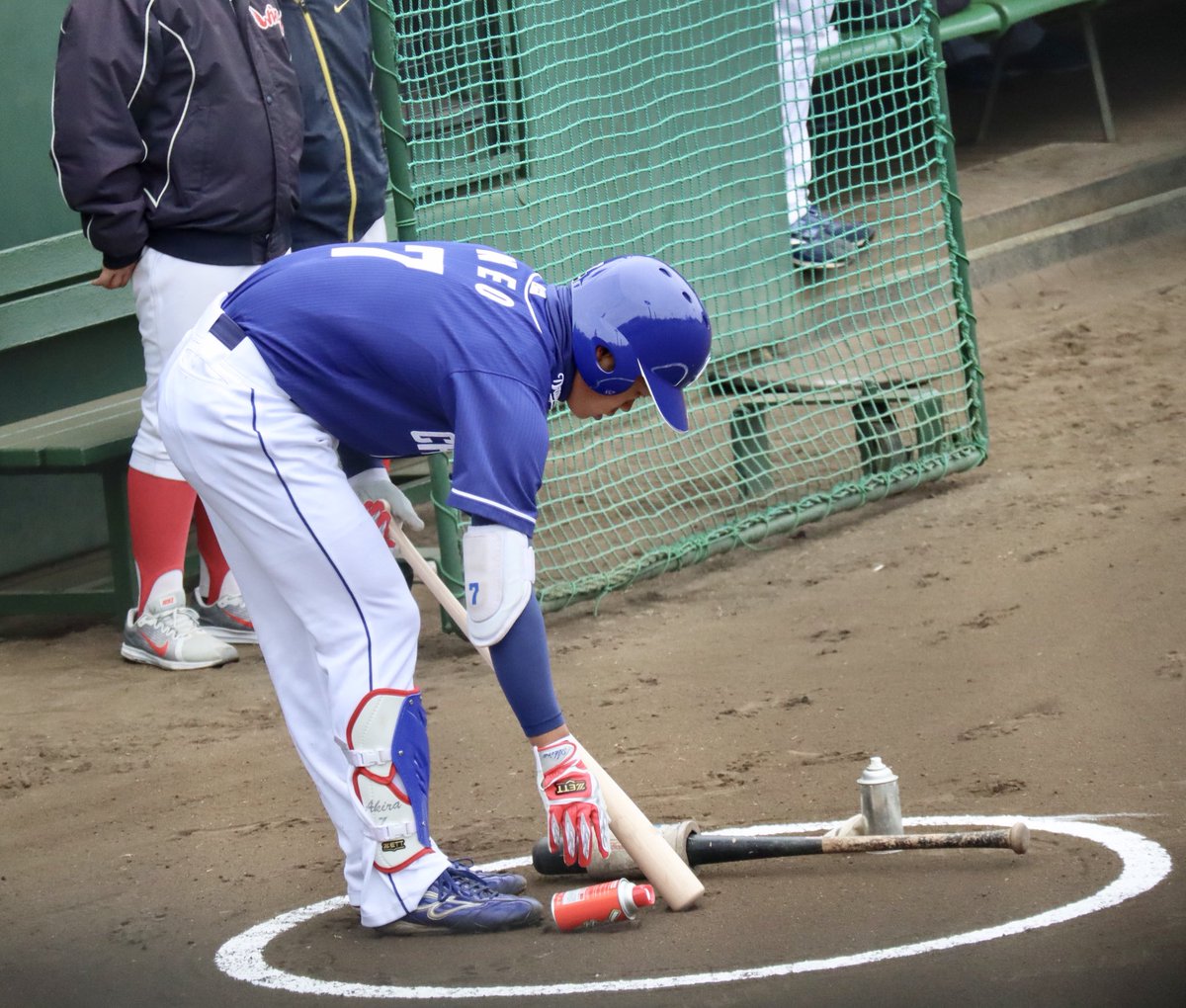 今日の練習では、OP戦が行われている頃に室内練習場でシート打撃を行った。対戦相手の清水投手の球を全部で20球。ヒット性の当たりは1本。痛烈なピッチャー返しのゴロだった。その後のフリーバッティングではおかわりもあったので、打撃をみっちりとやった。