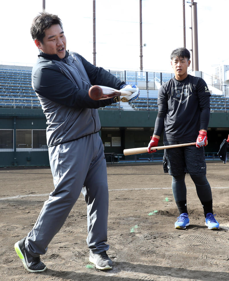巨人岡本和真内野手(22)が通算385本塁打の西武中村剛也内野手(35)と都内で昨年に続き2度目の合同自主トレを行った。