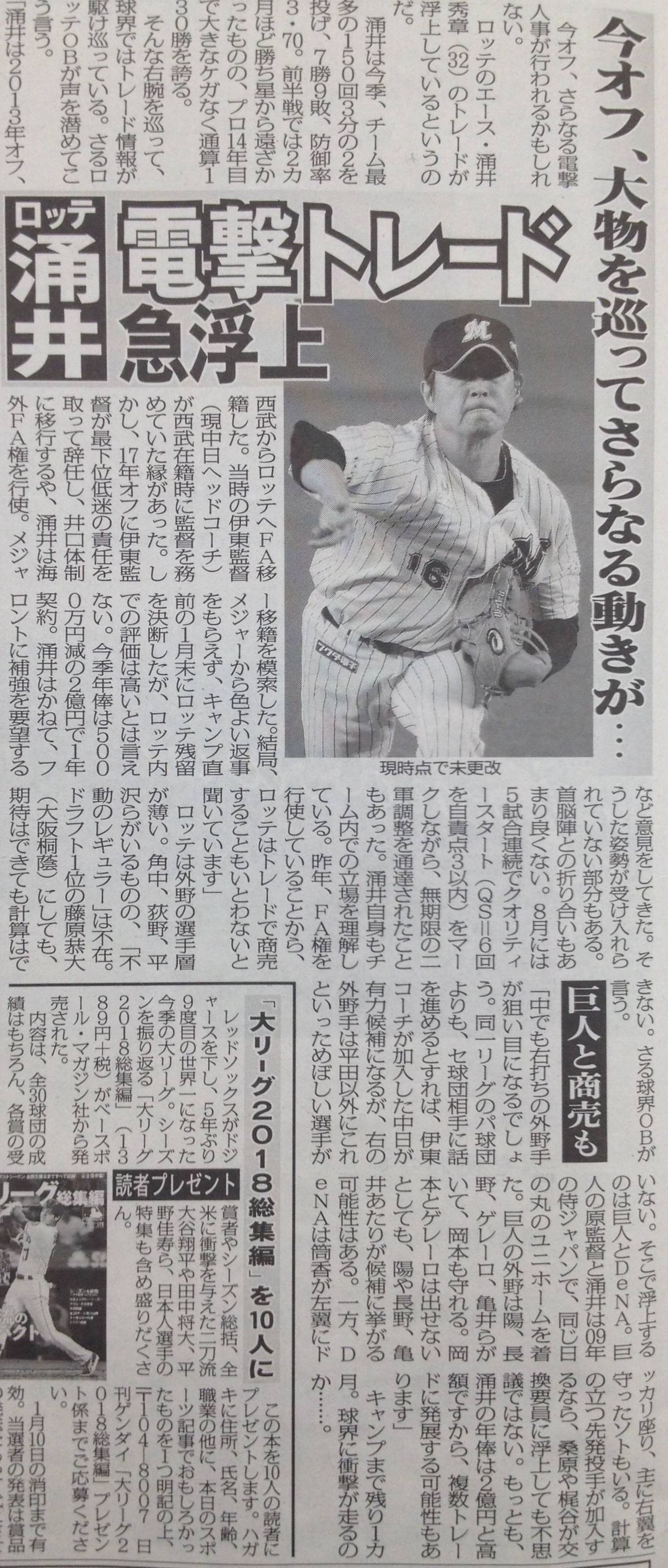 昨年、FA権を行使していることから、ロッテはトレードで商売することもいとわないと聞いています」